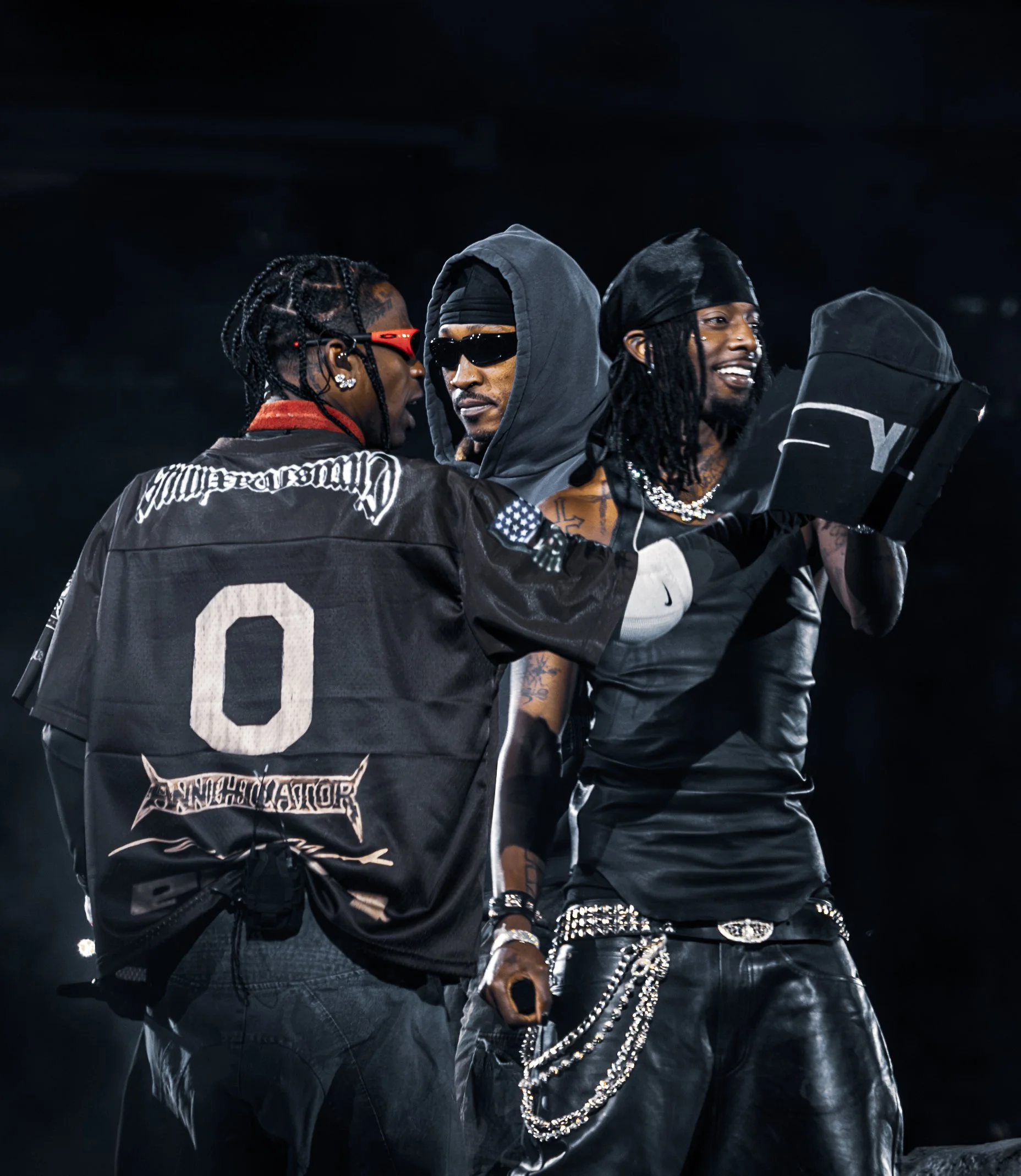 This shot, referred to as “The Big 3,” was taken at Travis Scott’s final UTOPIA Tour stop in the U.S. The hype was unreal—and when Travis brought out Future and Playboi Carti as surprise guests, the crowd went insane. The moment was so perfectly timed, people online thought it was photoshopped. It quickly went viral, reposted by major media outlets and Travis Scott himself—becoming one of the most iconic images of the entire tour.